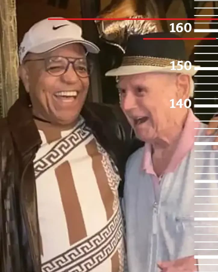 Ну и завершим обзор фотографией 2024-го года, сделанной в 102-й день рождения Рэя Энтони. Сравним 102-летнего Рэя с тогда ещё 94-летним Берри Горди, рост которого максимум 163 сантиметра с утра. Здесь рост Энтони будет уже 158 сантиметров, а значит к 102-м годам Рэй потерял практически рекордный 9-й сантиметр(3 из которых за последние 9 лет). Но в целом такая потеря к 102-м годам довольно приемлема.