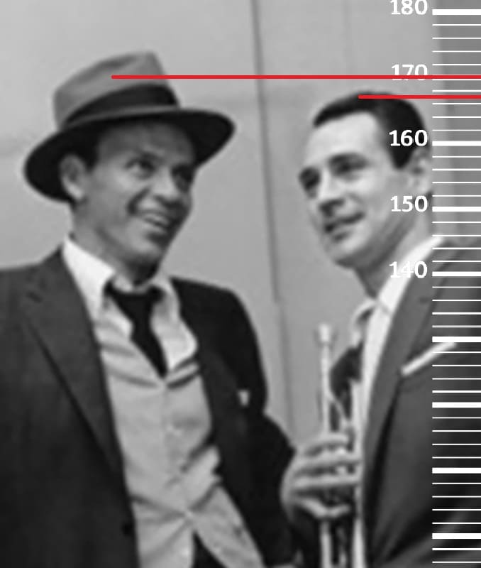 В 1954-м году сравним 32-летнего Рэя Энтони с 39-летним Фрэнком Синатрой, рост которого тогда был на пике формы, то есть 170 сантиметров(166 в последние годы жизни). Здесь рост Рэя уже чётко встал на отметку 167 сантиметров.