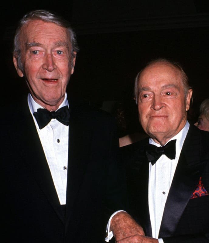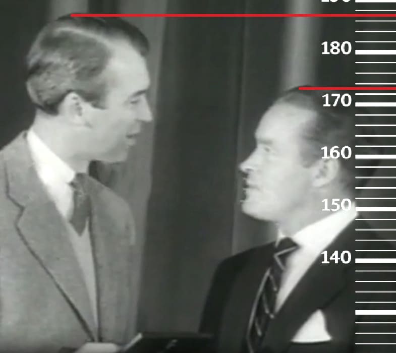 В 1951-м году сравним 48-летнего Боба Хоупа с 43-летним Джеймсом Стюартом, имевшим тогда свой пиковый рост 187 сантиметров(183 в последние годы жизни). Здесь рост Боба будет уже 173 сантиметра, а значит к 48-ми годам Хоуп уже потерял первый сантиметр от своего пикового показателя роста.