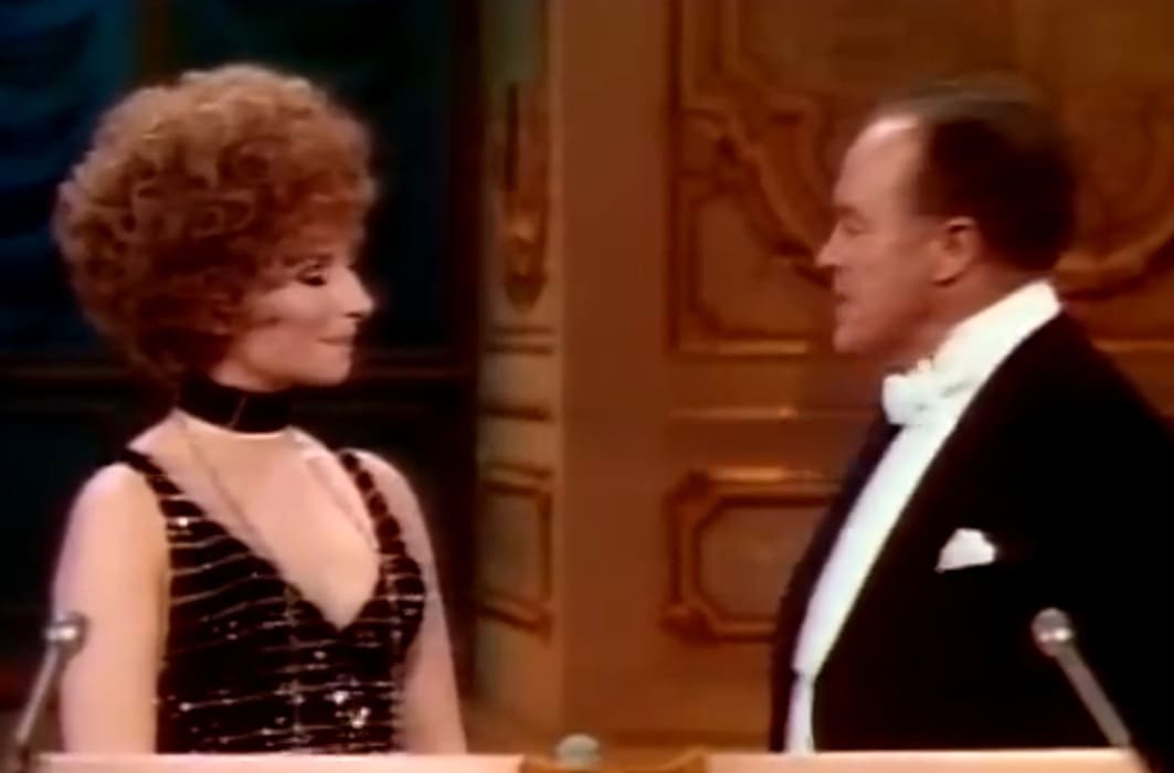 В том же 1968-м году сравним такого же 65-летнего Боба Хоупа с 26-летней Барброй Стрейзанд, рост которой тогда был на пике формы, а именно 166 сантиметров(170 на каблуках, 162 сейчас). Здесь рост Боба будет 173 сантиметра в обуви и также 171 без неё.