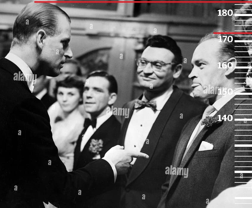 В 1972-м году сравним 69-летнего Боба Хоупа с 24-летним Карлом Третьим, рост которого тогда был на пике формы, то есть 177 сантиметров(174 в наши дни). Рост Боба здесь также будет на отметке 171 сантиметр.