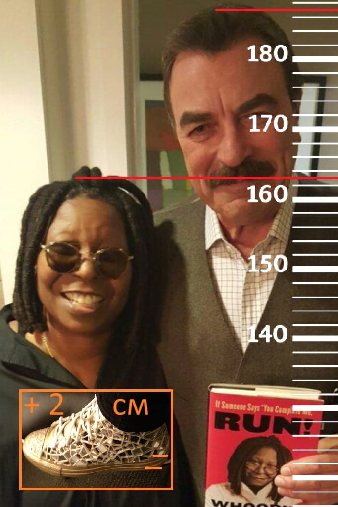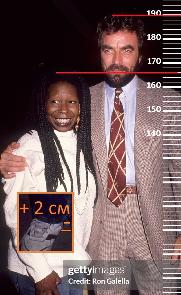 Том Селлек немного выше них, а именно 187 сантиметра. Рост Вупи Голдберг будет на той же отметке в 163 сантиметра.