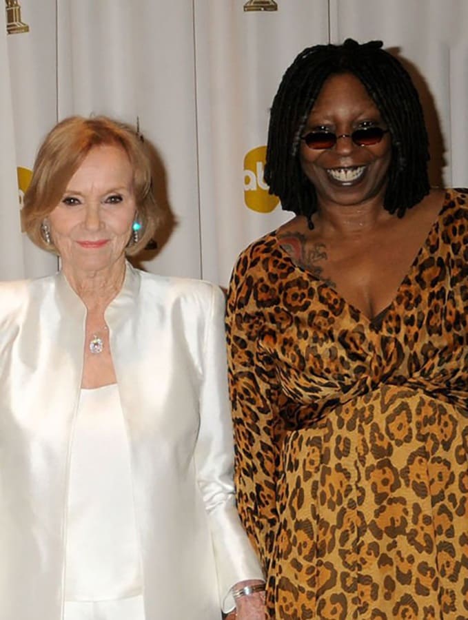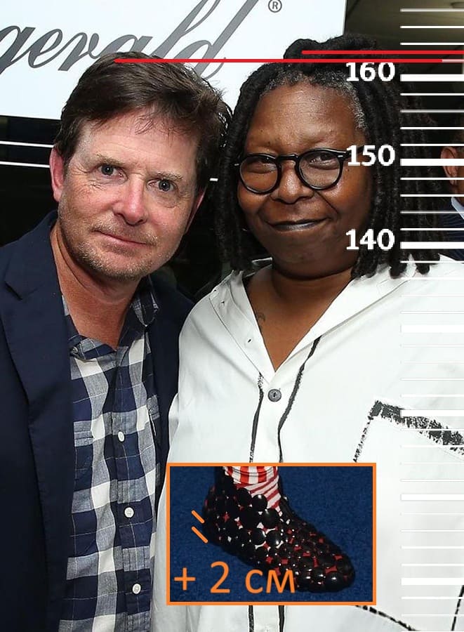 Сравним Вупи Голдберг с Майклом Джей Фоксом, рост которого не превышает 162 сантиметров. Здесь Вупи едва ли выше коллеги.