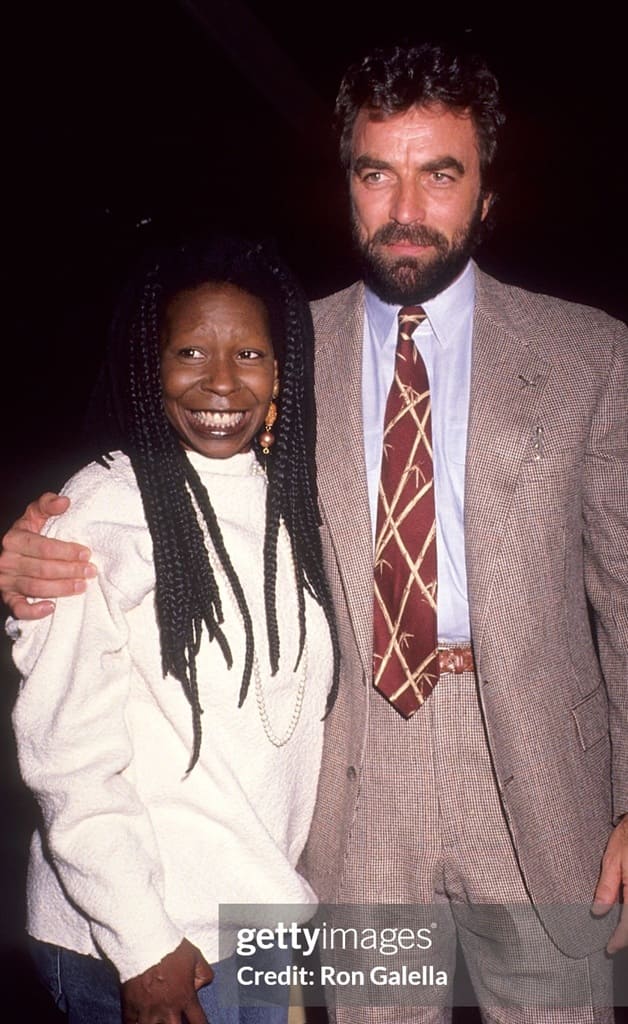 В 1990-м году сравним 35-летнюю Вупи Голдберг с вышеупомянутым, но тогда 45-летним Томом Селлеком(1 фото), 44-летним Тимоти Далтоном(2 фото) и 41-летним Брентом Спайнером(3 фото). Рост всех сравниваемых с Вупи мужчин на тот момент - пиковый, а именно 190, 187 и 179 сантиметров(187, 183 и 175 сейчас), соответственно. Рост последних двух взят в обуви ввиду различия в обуви(189 и 181 сантиметр, соответственно). Во всех трёх случаях рост Вупи (с вычетом обуви и без) будет на той же пиковой отметке 166 сантиметров.