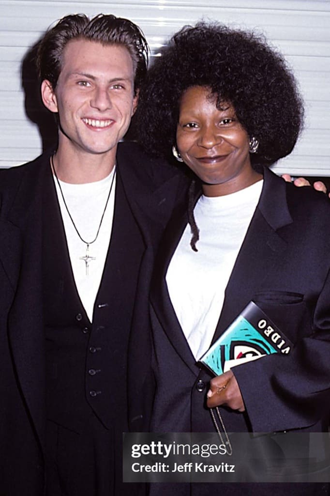 Годом позже, в 1991-м году, сравним 36-летнюю Вупи Голдберг с 37-летним Дензелом Вашингтоном(1 фото), 45-летним Брюсом Дэвисоном(2 фото) и 22-летним Кристианом Слэйтером(3 фото). Рост всех трёх сравниваемых с Вупи мужчин на тот момент - пиковый, а именно 183, 180 и 172 сантиметра, соответственно (180, 176 и 171 сейчас). Рост первых двух мы возьмём в обуви (в первом случае из-за каблуков, во втором - из-за отсутствия обуви со стороны Голдберг), а в третьем случае обувь равнозначна. Во всех трёх случаях рост Вупи (с вычетом погрешности обуви и без) будет также на отметке в 166 сантиметров.