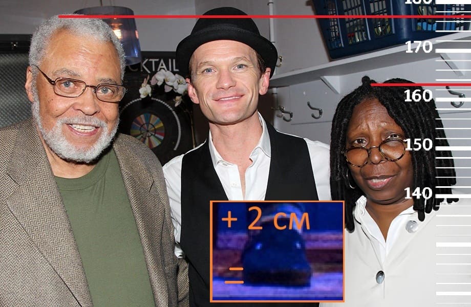 Завершим же эту часть статьи, сравнив Вупи Голдберг с Джеймсом Эрл Джонсом, рост которого в последние годы составлял 177 сантиметров. Здесь ситуация не меняется, и рост Голдберг будет также 163 сантиметра.