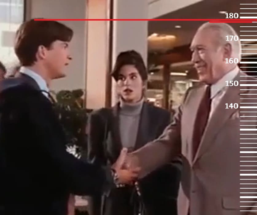 Начнём с 1994-го года. Сравним 25-летнего Джейсона Бейтмана с 79-летним Энтони Куинном, рост которого тогда был 178 сантиметров(182 на пике формы, 177 в конце жизни). Здесь рост Джейсона будет уже 179 сантиметров. Ну и так как в 25 лет его рост точно был на пике формы, то явно выше этих 179 сантиметров по жизни Бейтман точно не был.