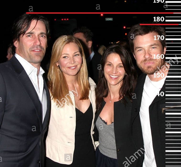 Джон Хэмм немного выше, а именно 184 сантиметра. Здесь рост Джейсона Бейтмана также будет на отметке 178 сантиметров.