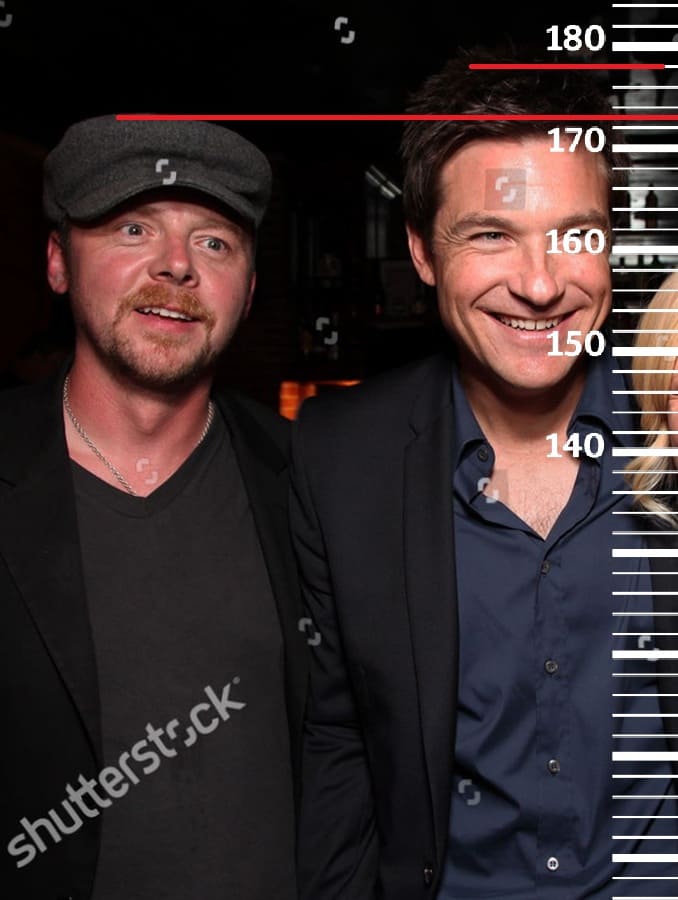 Далее сравним Джейсона Бейтмана с Саймоном Пеггом, рост которого максимум 173 сантиметра с утра. Здесь рост Джейсона по-прежнему будет 178 сантиметров.