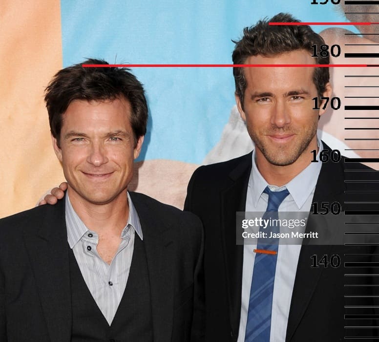 Дэкс Шепард(1 фото), Бен Аффлек(2 фото) и Райан Рейнольдс(3 фото) одинаковый рост по 186 сантиметров каждый. Во всех трёх случаях рост Джейсона Бейтмана неизменно держит за собой отметку 178 сантиметров.