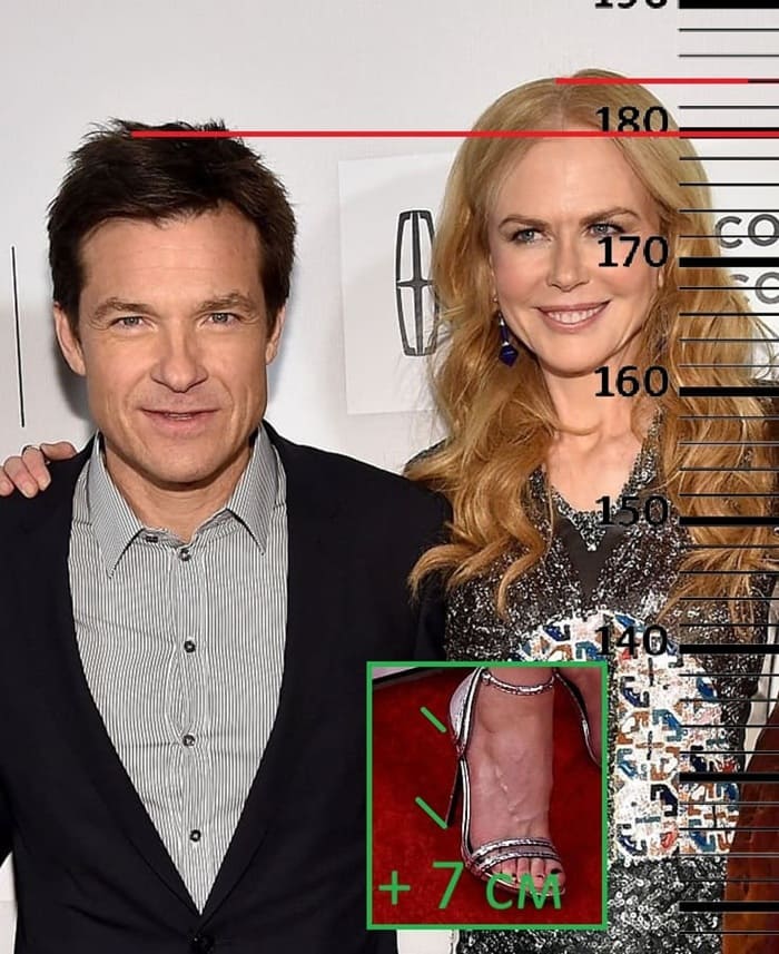 Рост Николь Кидман также не превышает 177 сантиметров(184 на каблуках). Здесь рост Джейсона будет уже 180 сантиметров, но если мы вычтем обувь из этого значения, то его рост вновь будет не выше 178 сантиметров.