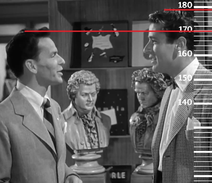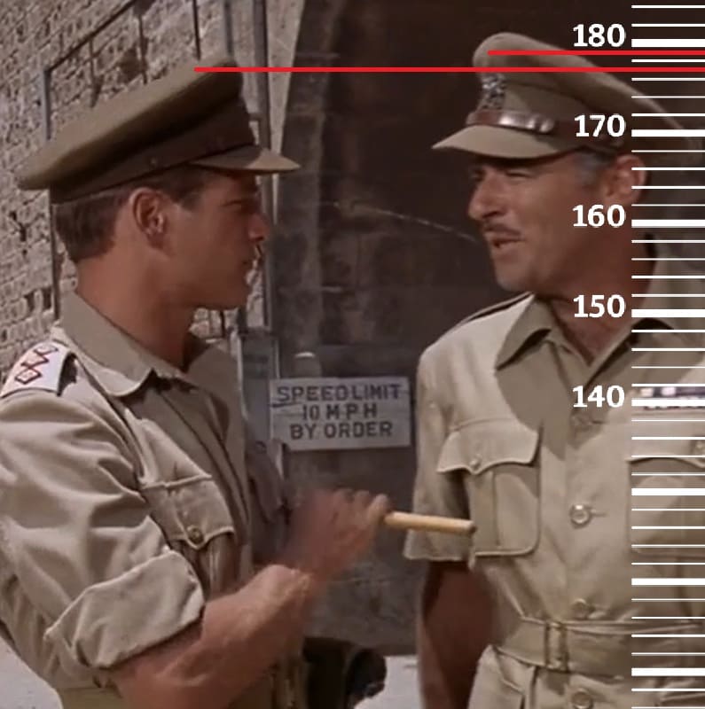 Начнём с далёкого 1942-го года. Сравним 19-летнего Питера Лоуфорда с 22-летним Микки Руни, имевшим тогда свой пиковый рост 158 сантиметров(152 в конце жизни). Здесь рост Питера будет 179 сантиметров. Однако есть небольшая вероятность, что в 19 лет Лоуфорд не достиг своего пикового роста. Далее мы узнаем, так ли это.