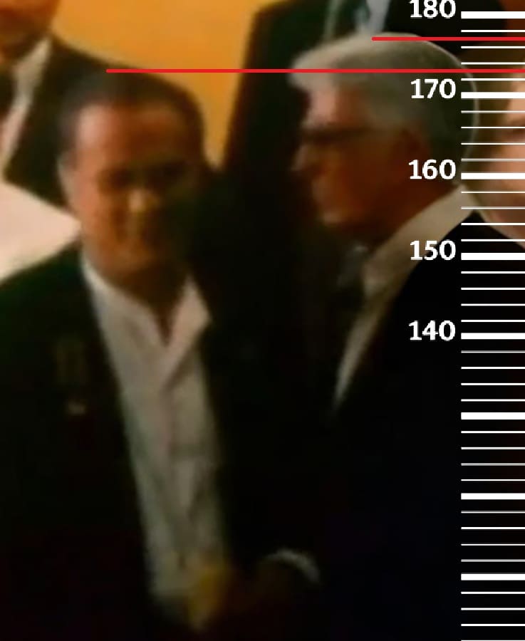 Ну и под конец, спустя более 10 лет, в 1984-м году сравним 61-летнего Питера Лоуфорда с 59-летним Тони Кёртисом, рост которого тогда был 173 сантиметра(175 на пике формы, 171 в последние годы жизни). Здесь рост Питера будет уже 177 сантиметров, а значит к 61-му году он потерял второй сантиметр от своей пиковой отметки роста. Ну и поскольку через несколько месяцев после съемок фильма Лоуфорд умрёт, то справедливо будет сказать, что больше он не проседал, а так и покинул свет с ростом 177 сантиметров.