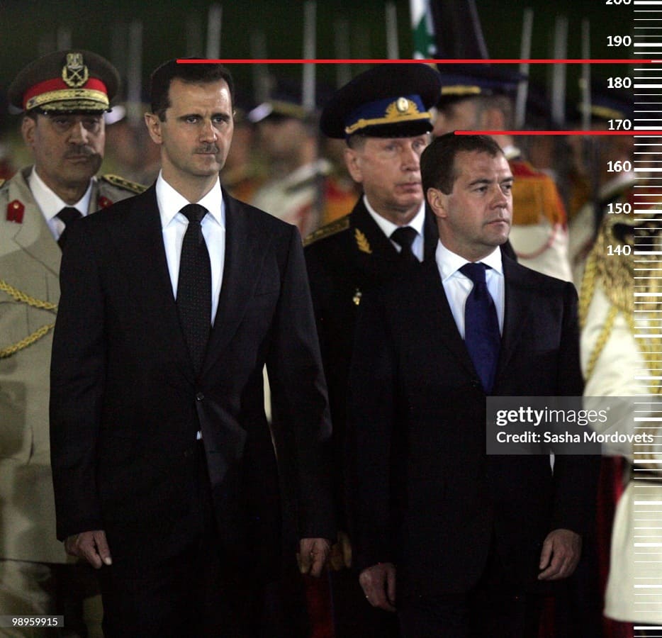 Дмитрий Медведев немного выше, а именно 169 сантиметров. Здесь рост Башара Асада будет также 186 сантиметров.