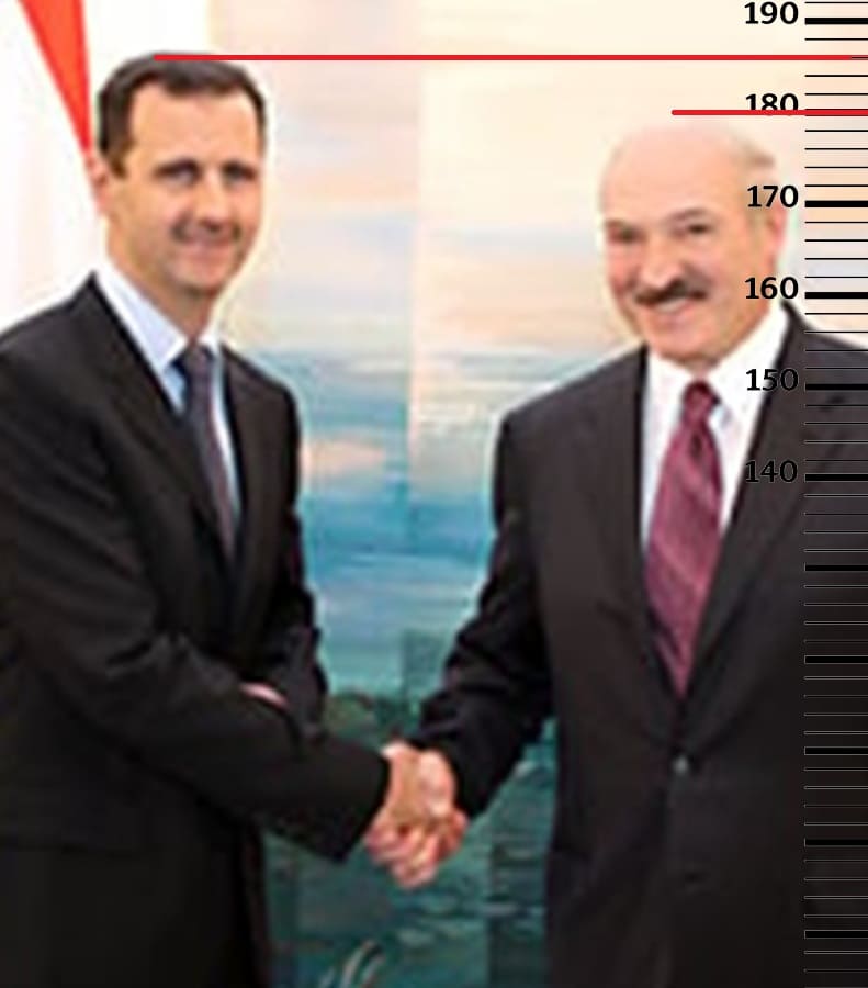 Рост Александра Лукашенко в утреннее время равен 180 сантиметров. Здесь рост Башара Асада также встал на отметку 186 сантиметров.