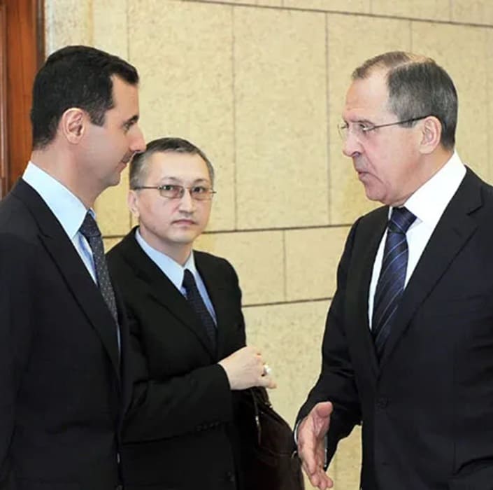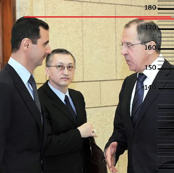 Сергей Лавров немного выше, а именно 185 сантиметров. Здесь Башар Асад едва ли выше него.