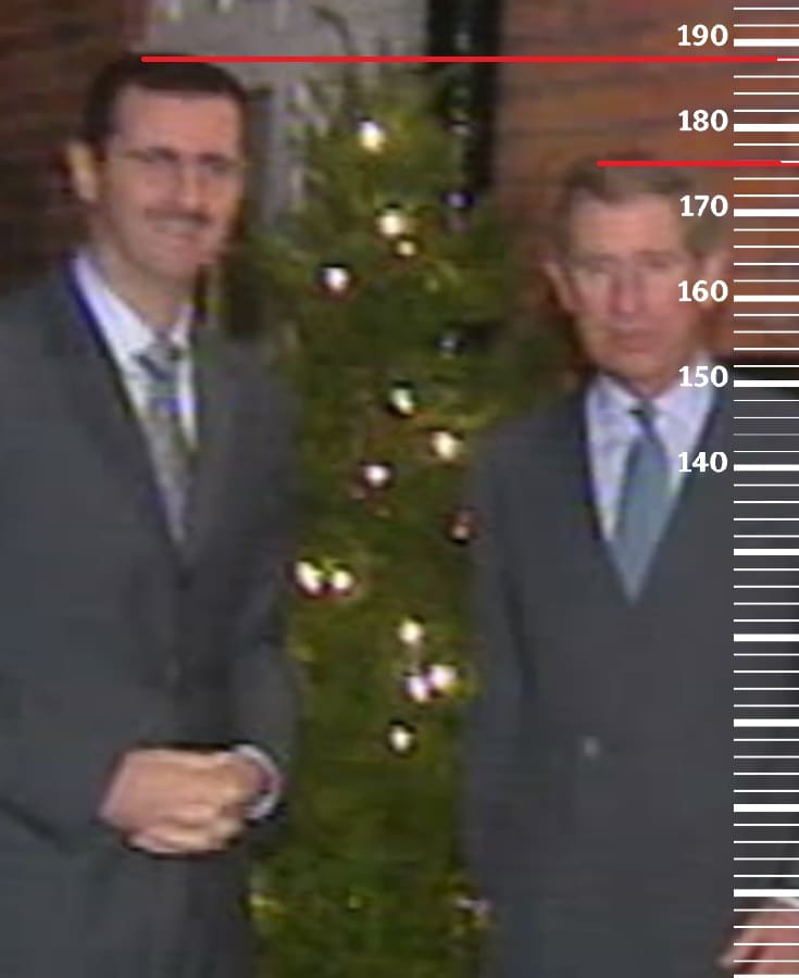 Годом позже, в 2002-м году, сравним 37-летнего Башара Асада с 54-летним Карлом Третьим, имевшим тогда рост 176 сантиметров(177 на пике формы, 174 сейчас). Здесь рост Асада также будет 188 сантиметров.