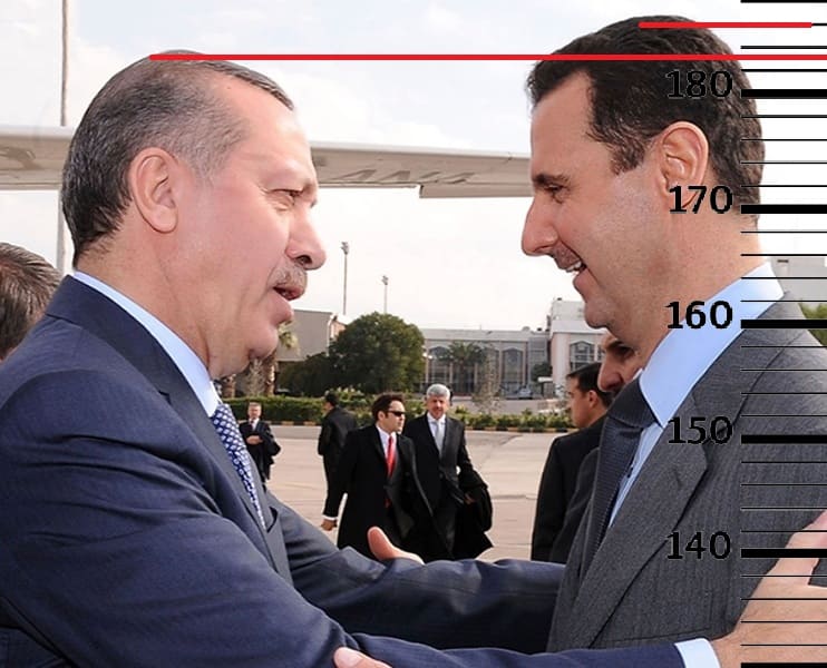 Реджеп Тайип Эрдоган ненамного выше, а именно 183 сантиметра. Здесь рост Башара Асада также помещается на отметку 186 сантиметров.