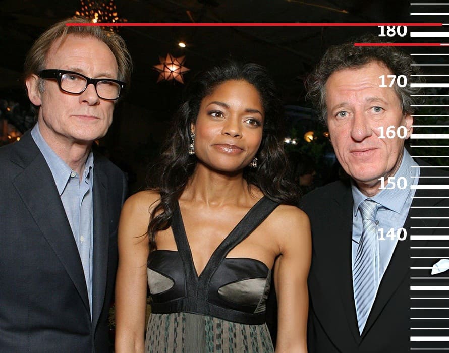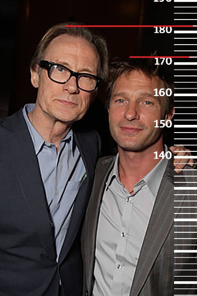 Джеффри Раш немного выше, а именно 178 сантиметров. Здесь Билл Найи вновь достиг отметки 182 сантиметра.