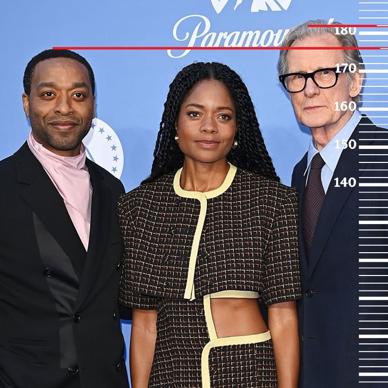 Далее сравним Билла Найи с Чиветелем Эджиофором, рост которого не превышает 176 сантиметров. Здесь рост Билла по-прежнему стоит на отметке 182 сантиметра.