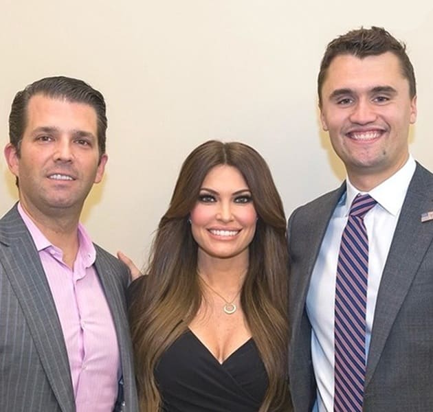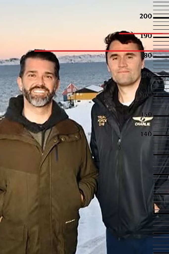 Далее рассмотрим два фото, сделанных в разное время (2018 и 2025 годы, соответственно), где сравним Дональда Трампа-младшего с Чарли Кирком, рост которого при жизни составлял 192 сантиметра с утра. В обоих случаях рост Дональда будет также на отметке в 183 сантиметра.