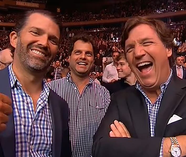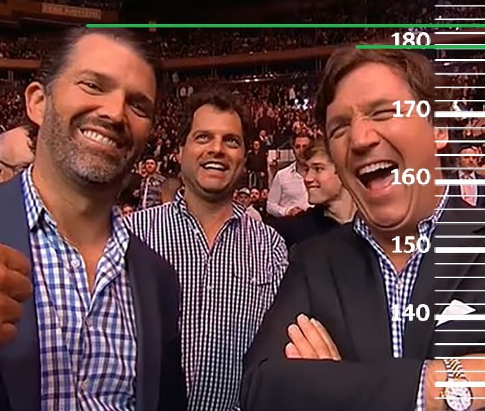 Рост Такера Карлсона в утреннее время равен 180 сантиметров. Здесь рост Дональда Трампа-младшего в очередной раз будет на отметке 183 сантиметра.