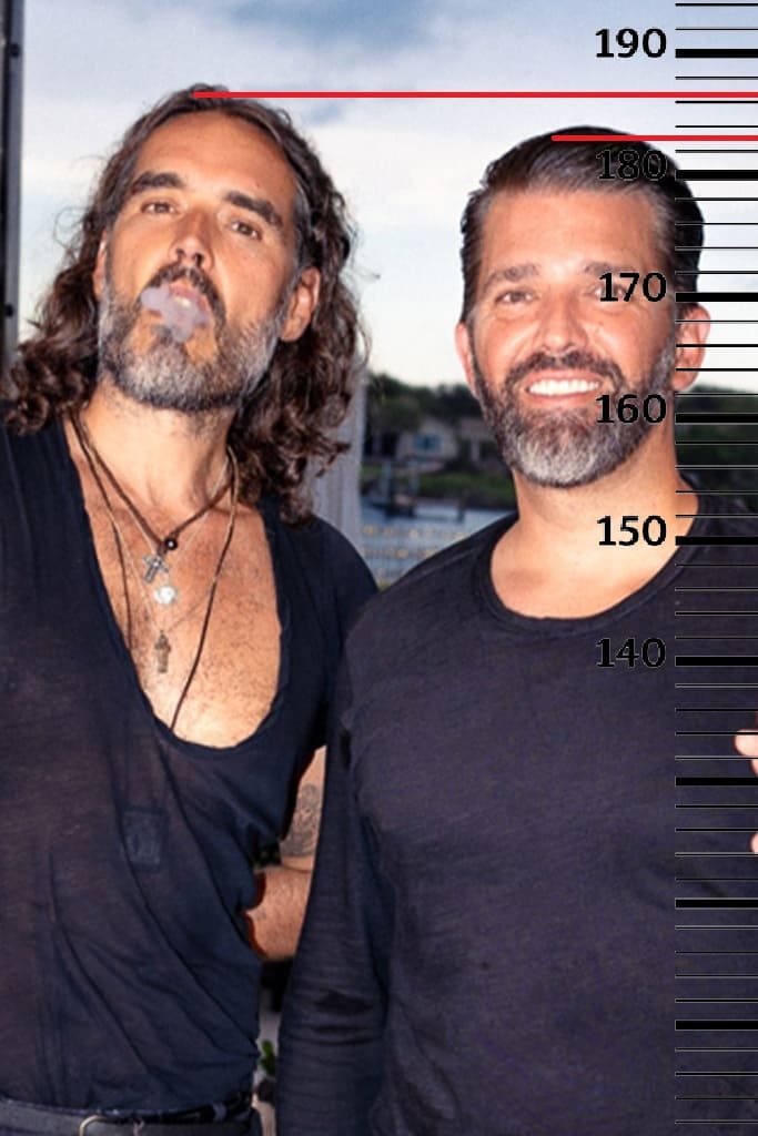 Рассел Брэнд немного выше, а именно 187 сантиметров(186.5 на фото из-за сутулости). Здесь рост Дональда Трампа-младшего будет также 183 сантиметра.