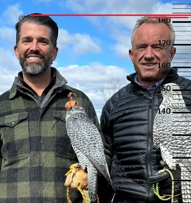 Роберт Кеннеди-младший немного выше, а именно 182 сантиметра. Здесь Дональд Трамп-младший едва ли выше него.