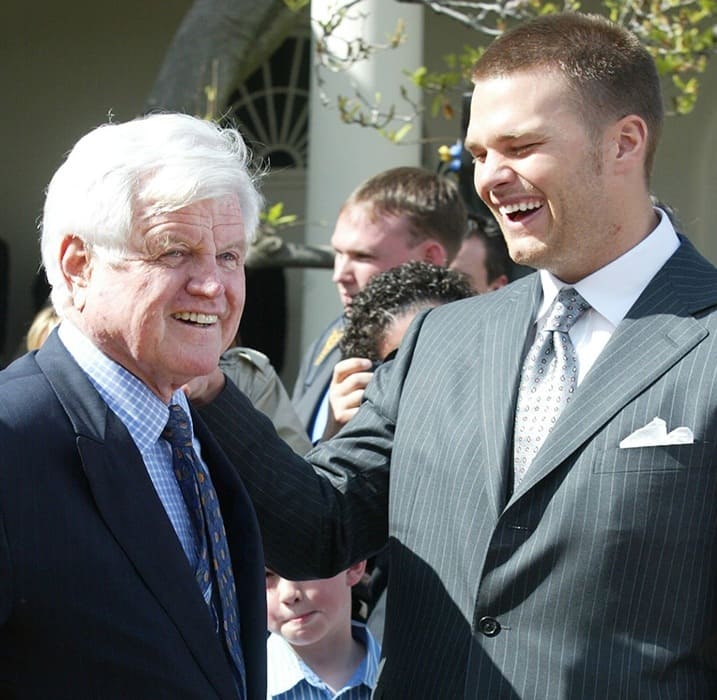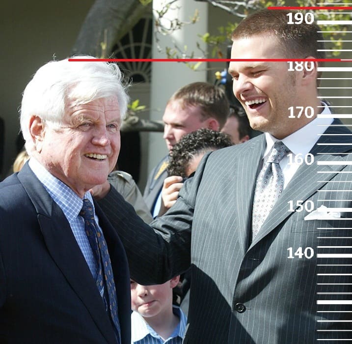 Спустя ещё один год, в 2005-м году, сравним 73-летнего Эдварда Кеннеди с 28-летним Томом Брэди, рост которого тогда, как и сейчас, равен 193 сантиметра. Здесь рост Кеннеди по-прежнему будет 182 сантиметра.
