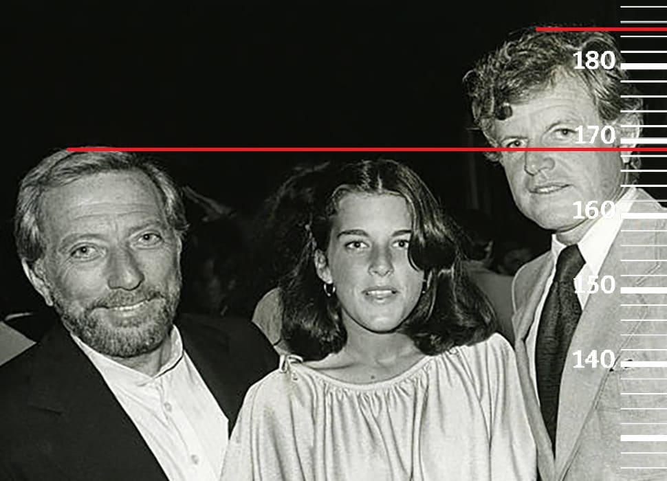 В 1970-м году сравним 38-летнего Эдварда Кеннеди с 55-летним Энтони Куинном, имевшим тогда рост 180 сантиметров(182 на пике формы, 177 в конце жизни). Здесь рост Кеннеди также будет на своей пиковой отметке 185 сантиметров.