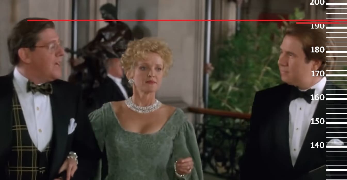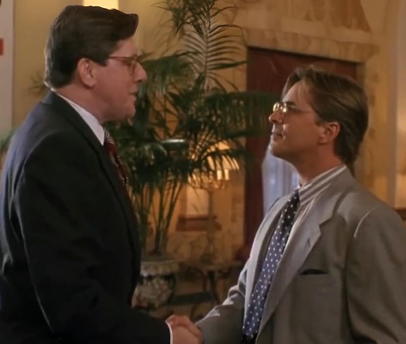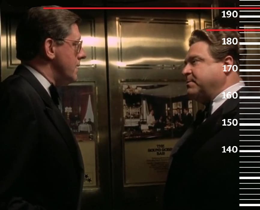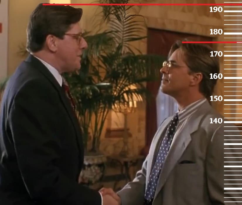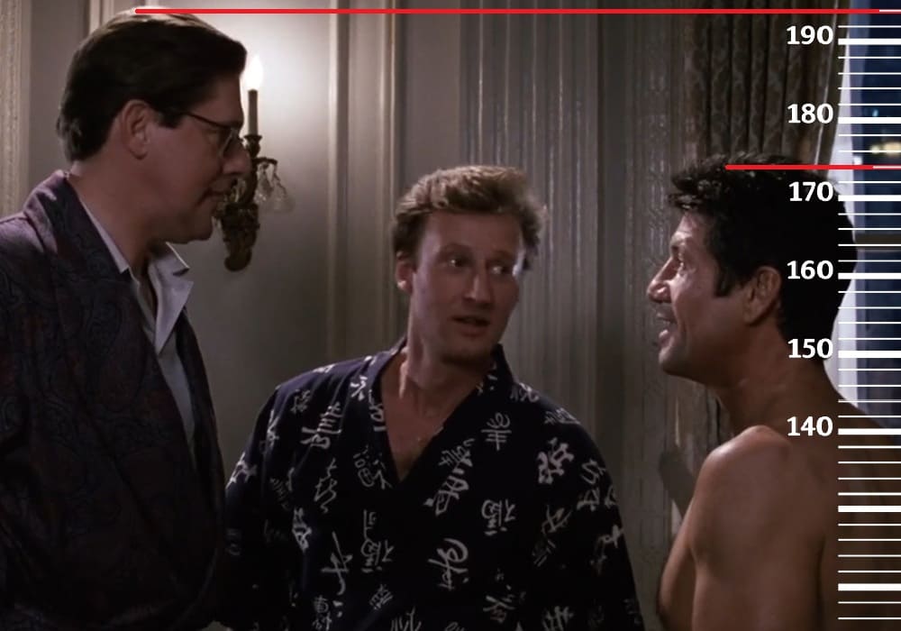 Годом позже, в 1994-м году, сравним 51-летнего Эдварда Херрманна с 47-летним Джоном Ларрокеттом, имевшим тогда рост 192 сантиметра(193 на пике формы, 189 сейчас). Здесь рост Эдварда также помещается на отметку 193 сантиметра.