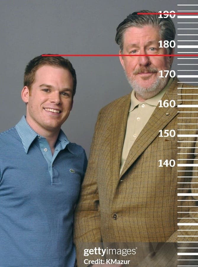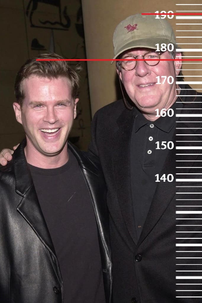 Под конец, в 1999-м году, сравним 56-летнего Эдварда Херрманна с 84-летним Илаем Уоллаком, рост которого тогда составлял 164 сантиметра(169 на пике формы, 162 в конце жизни). Здесь рост Эдварда будет уже 192 сантиметра, а значит к 56-ти годам он потерял уже второй сантиметр от пикового показателя роста.