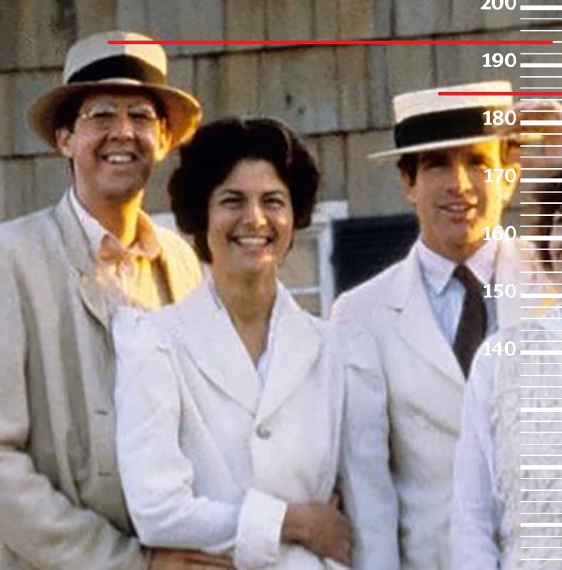 Годом позже, в 1981-м году, сравним 38-летнего Эдварда Херрманна с 44-летним Уорреном Битти, имевшим тогда свой пиковый рост 185 сантиметров(182 в наши дни). Здесь рост Эдварда будет на той же отметке 194 сантиметра.