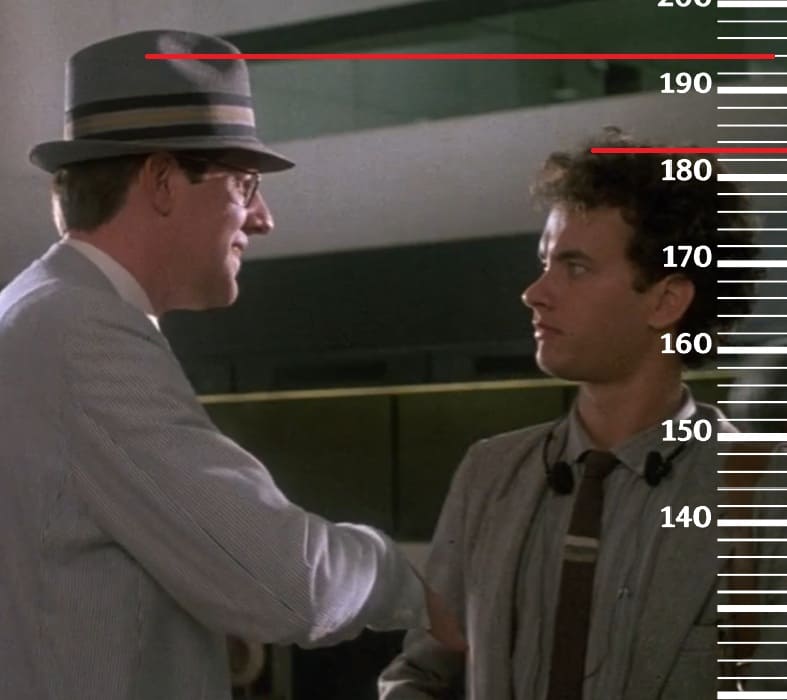 В 1985-м году сравним 42-летнего Эдварда Херрманна с 30-летним Джеффом Дэниелсом(1 фото) и 29-летним Томом Хэнксом(2 фото). Рост обоих сравниваемых с Эдвардом мужчин на тот момент - пиковый, а именно 187 и 183 сантиметра, соответственно (184 и 181 сейчас). В обоих случаях рост Херрманна будет на своей пиковой отметке 194 сантиметра.