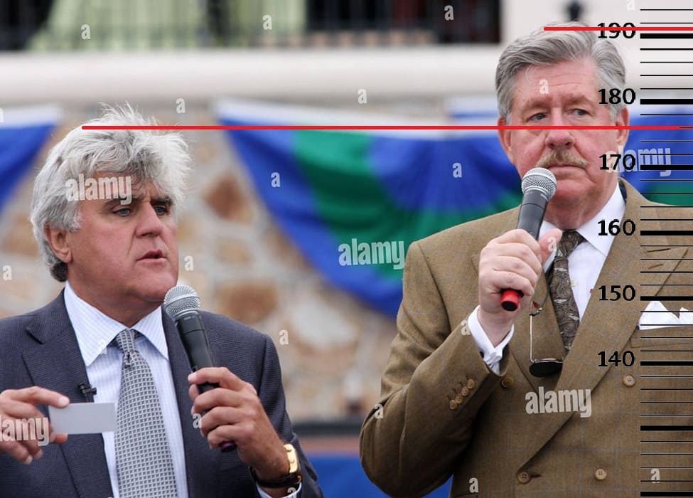 Закрепим небольшой обзор в нашем времени, сравнив Эдварда Херрманна с Джеем Лено, рост которого тогда, как и в наши дни, будет 176 сантиметров(178 на пике формы). Здесь рост Эдварда будет также на отметке 191 сантиметр.