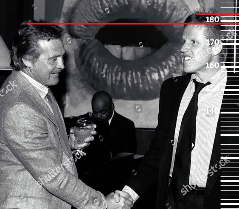 Рост Малкольма Макдауэлла в утреннее время равен 170 сантиметров. В сравнении с ним рост Ли Мэйджорса также достигает отметки 176 сантиметров.