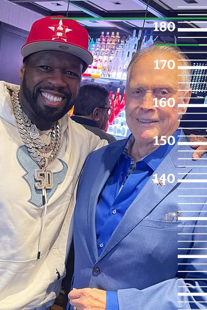 Для начала проверим самую высокую отметку роста Ли Мэйджорса в сети. Для этого сравним Ли с человеком, рост которого на самом деле равен 183 сантиметра. Этот человек - Кёртис "50 Cent" Джексон. Как можем видеть, ни 183, ни 180 сантиметров Ли не достигает,в обоих случаях будет только 176 сантиметров. Однако не станем забывать, что на сегодняшний день Мэйджорсу глубоко за 80, а значит в молодости он явно был выше. Но об этом позже.