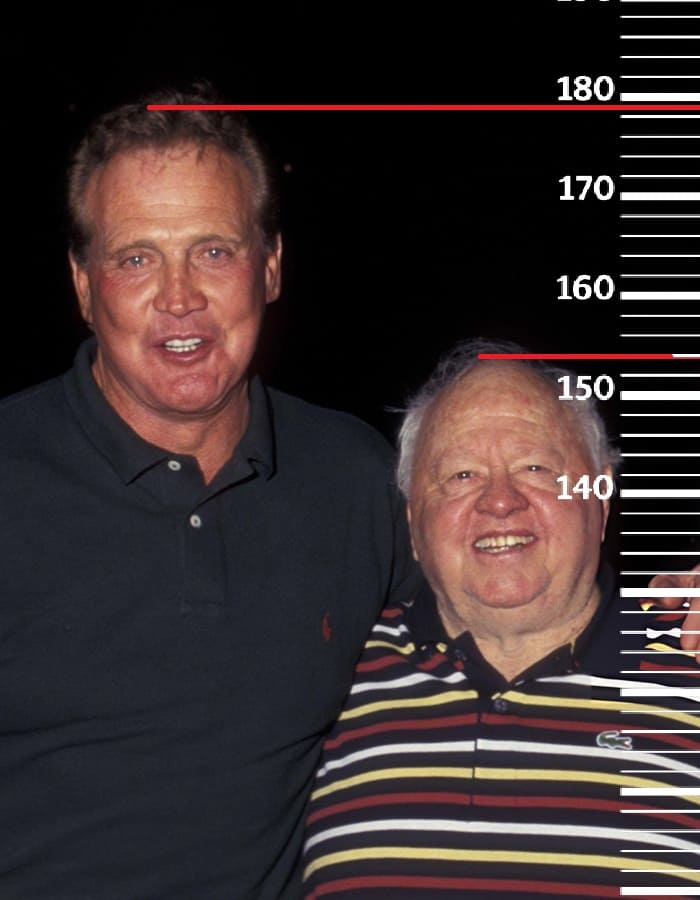 Под конец, спустя более декады, в 1997-м году сравним 58-летнего Ли Мэйджорса с 77-летним Микки Руни, рост которого в те годы был 154 сантиметра(158 на пике формы, 152 в конце жизни). Здесь рост Ли будет уже 179 сантиметров, а значит к 58-ми годам он потерял уже второй сантиметр от своего пикового параметра роста.