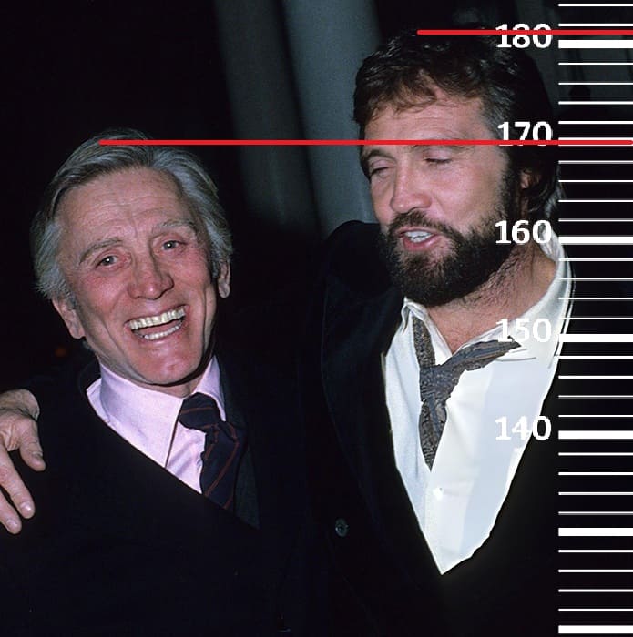 В 1977-м году сравним 38-летнего Ли Мэйджорса с 61-летним Кирком Дугласом, рост которого в те годы был 170 сантиметров(172 на пике формы, 165 в конце жизни). Здесь рост Ли также сохраняет свой пиковый рост 181 сантиметр.