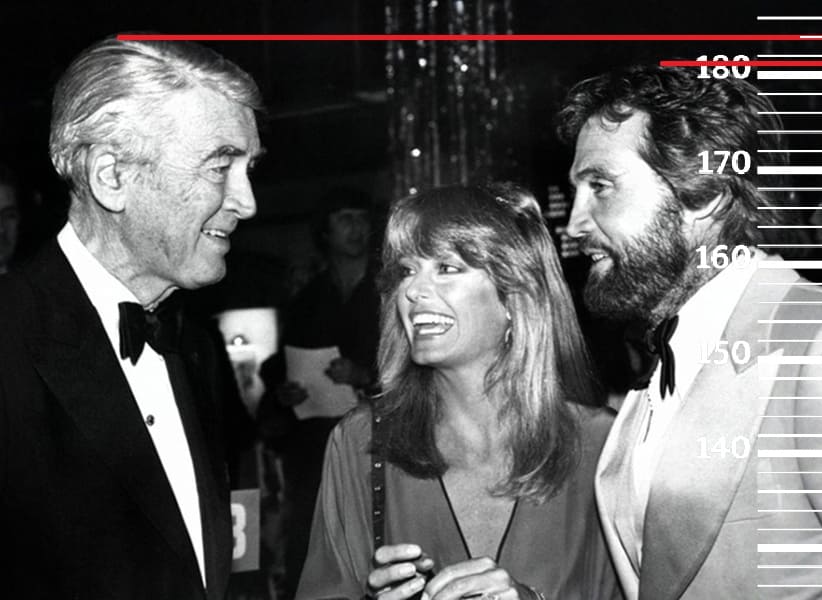 В 1983-м году сравним 44-летнего Ли Мэйджорса с 75-летним Джеймсом Стюартом, рост которого тогда был 184 сантиметра(187 на пике формы, 182 в последние годы жизни). Здесь рост Ли также держит свою пиковую отметку в 181 сантиметр.