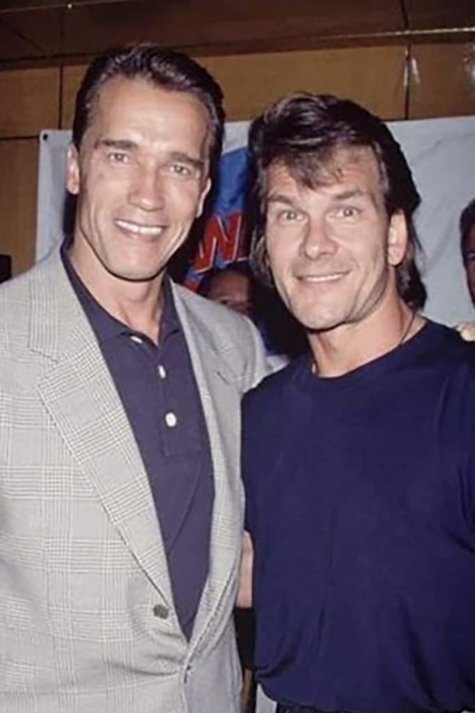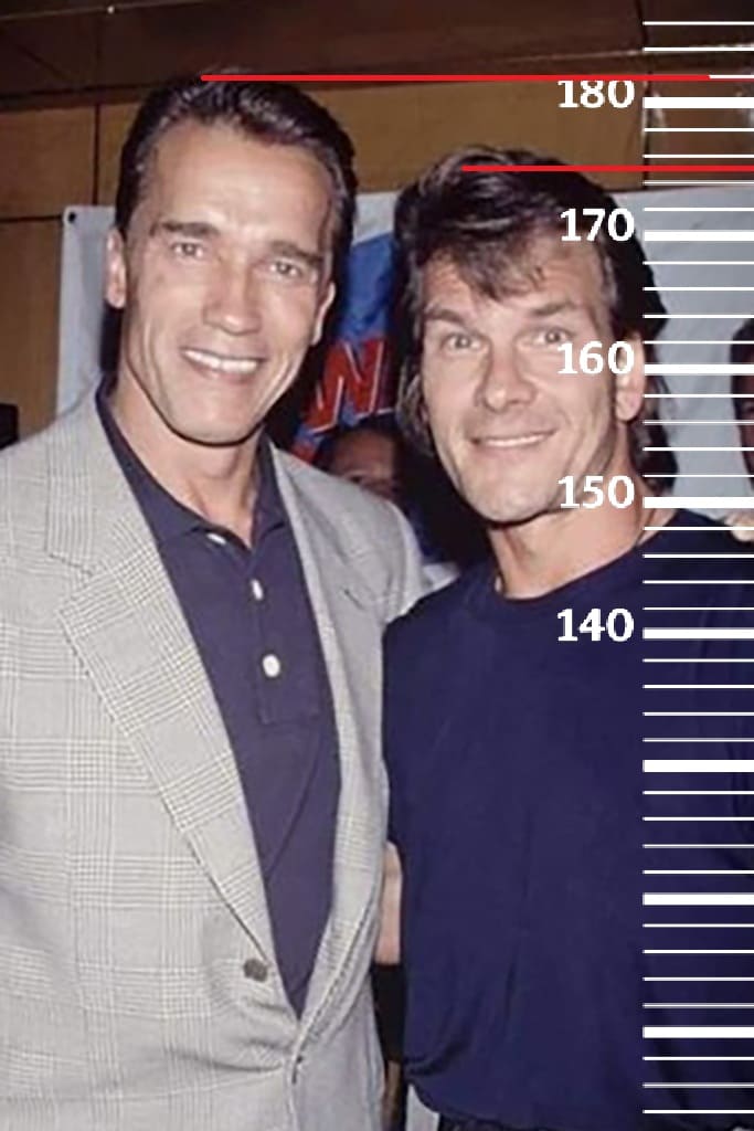 В том же 1991-м году сравним такого же 39-летнего Патрика Суэйзи с 44-летним Арнольдом Шварценеггером, имевшим тогда свой пиковый рост 182 сантиметра(180 в наши дни). Здесь рост Патрика также стоит на отметке 175 сантиметров.