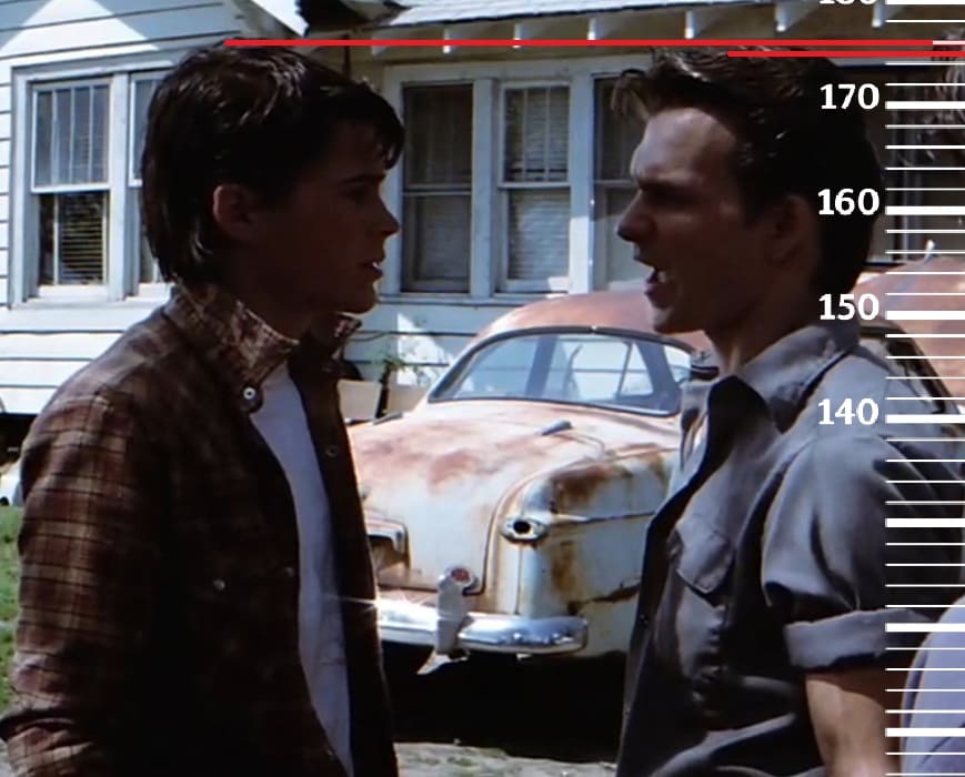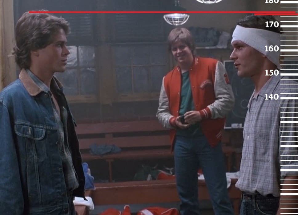 Годом позже, в 1986-м году, сравним 34-летнего Патрика Суэйзи с вышеупомянутым, но уже 22-летним Робом Лоу, рост которого ещё также был на пике формы, а именно 176 сантиметров(174 сейчас). Здесь рост Патрика также будет на отметке 175 сантиметров.