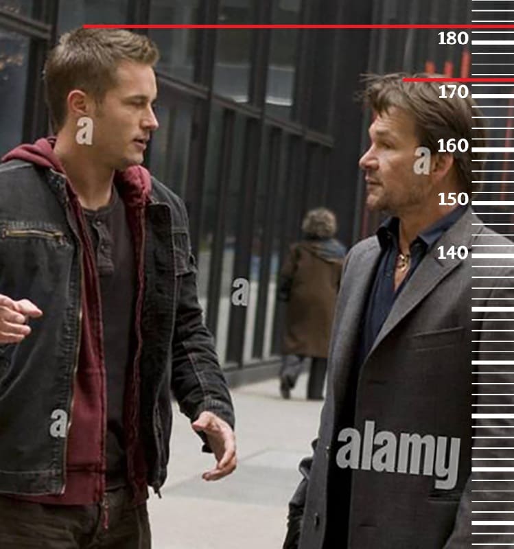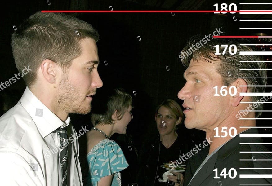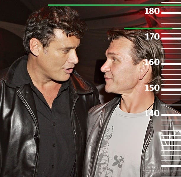 В 2003-м году сравним 51-летнего Патрика Суэйзи с 23-летним Джейком Джилленхолом, рост которого тогда, как и сейчас, равен 180 сантиметров. Здесь рост Патрика также встал на отметку 174 сантиметра.