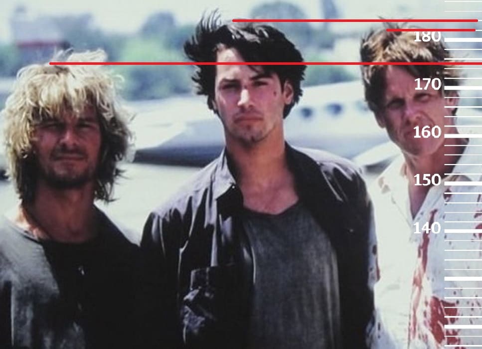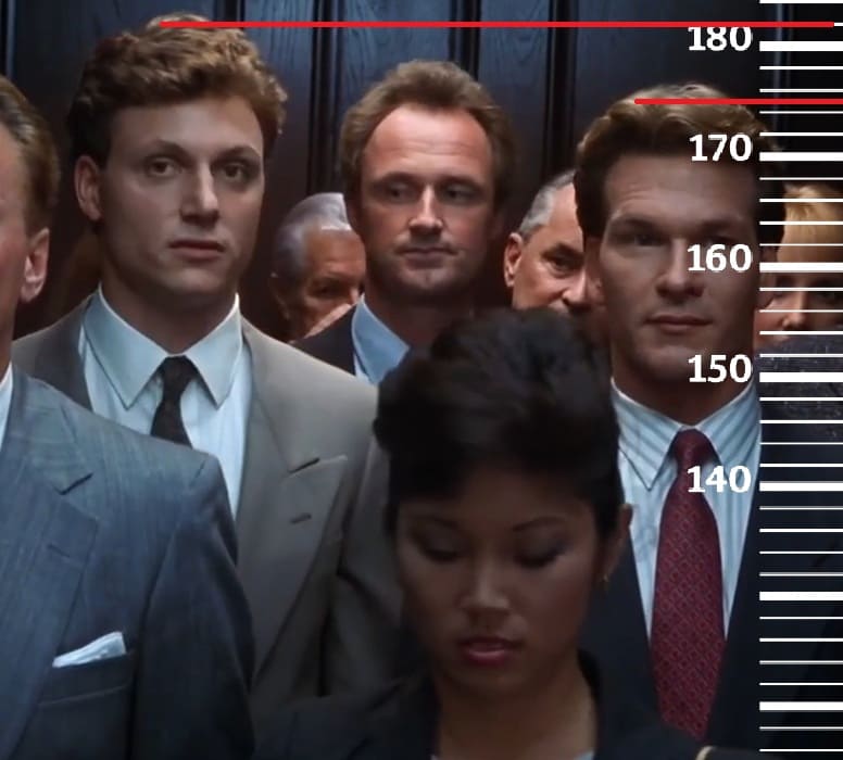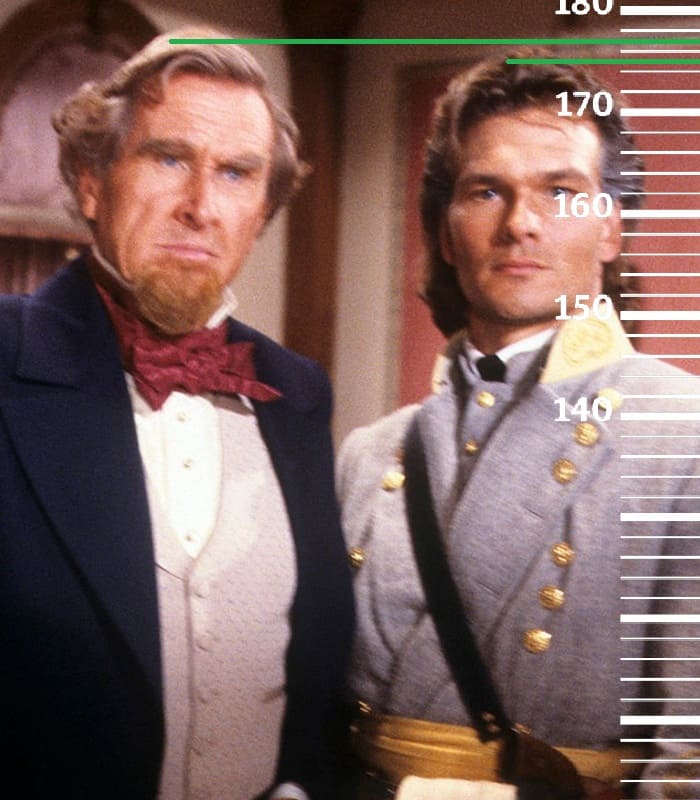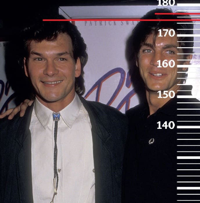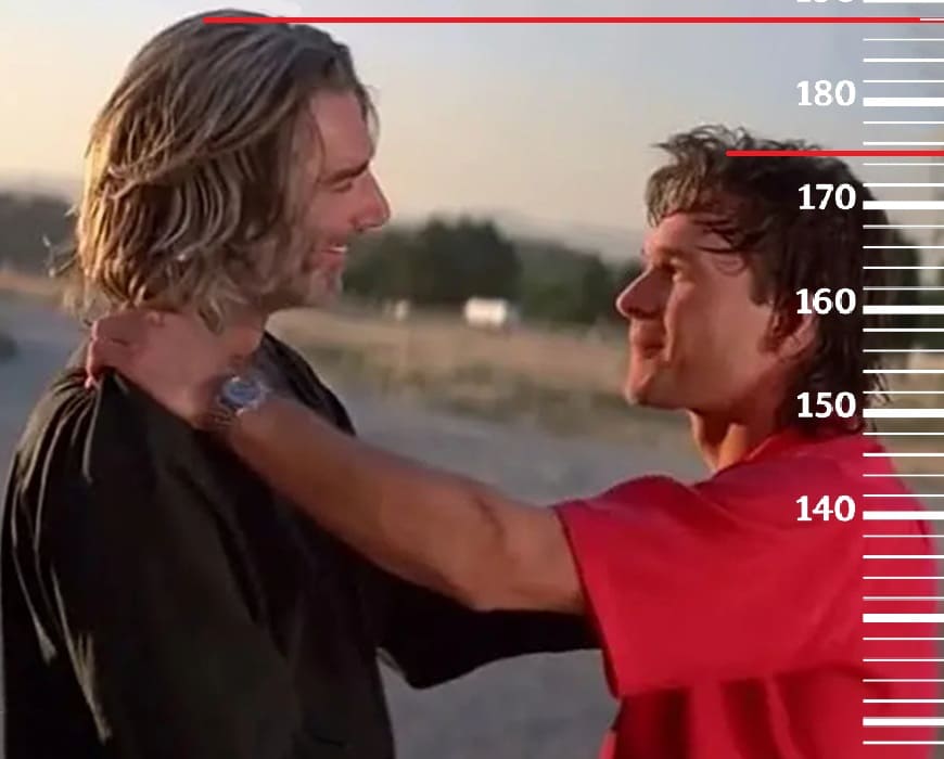 В 1985-м году сравним 33-летнего Патрика Суэйзи с 72-летним Ллойдом Бриджесом, имевшим тогда рост 177 сантиметров(180 на пике формы, 176 в последние годы жизни). Здесь рост Патрика также достигает отметки 175 сантиметров.