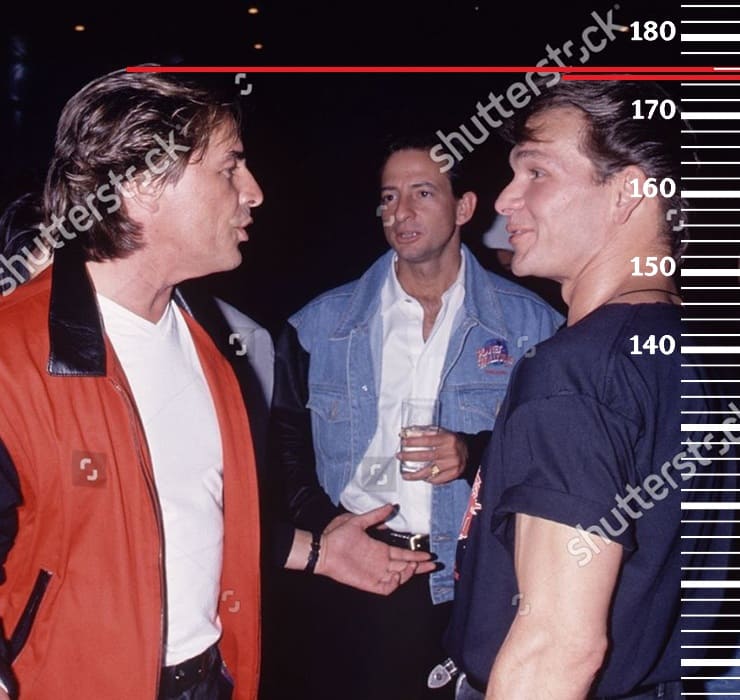 Спустя ещё один год, в 1987-м году, сравним 35-летнего Патрика Суэйзи с 31-летним Эриком Робертсом, имевшим тогда свой пиковый рост 177 сантиметров(174 сейчас). Здесь рост Суэйзи также встаёт на отметку 175 сантиметров.