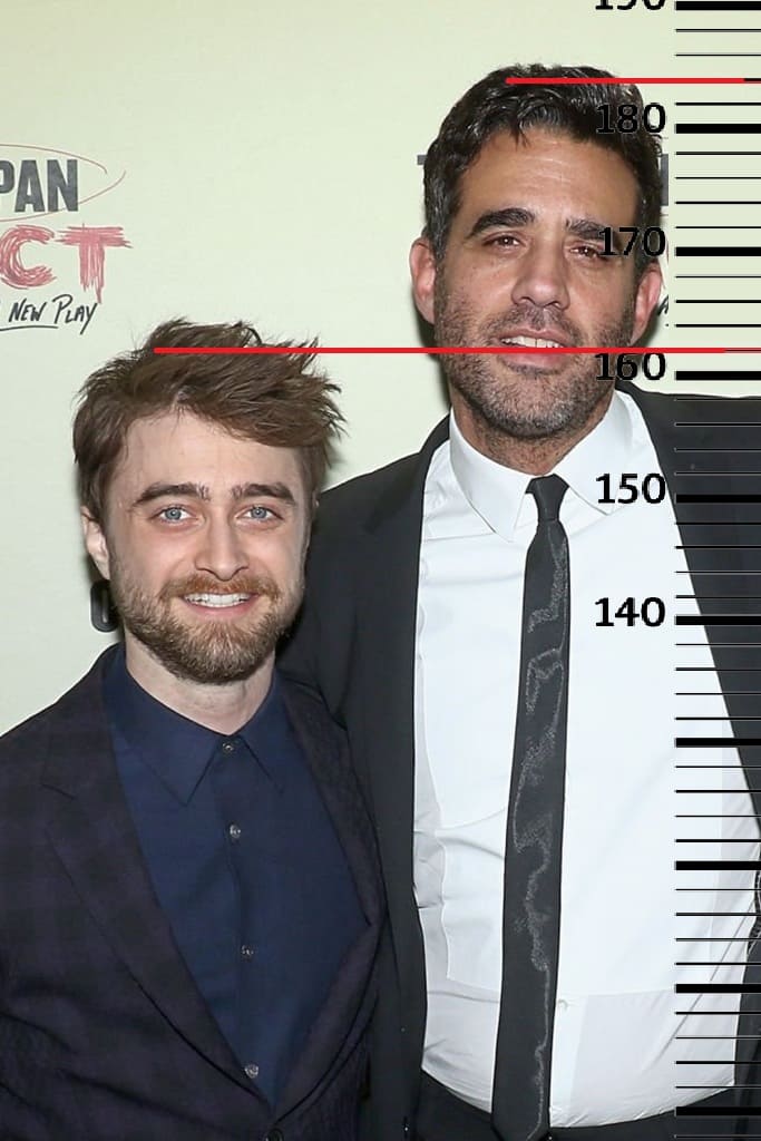 Дэниел Рэдклифф немного выше, а именно 162 сантиметра. Здесь рост Бобби Каннавале в сравнении с ним также встал на отметку 184 сантиметра.