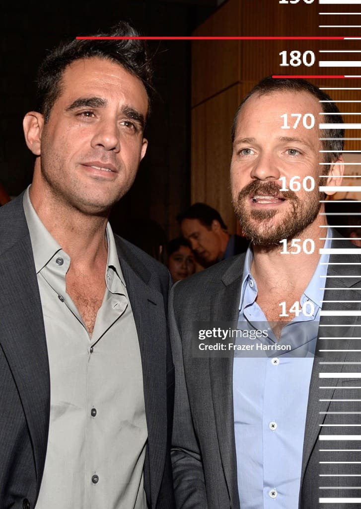 Питер Фачинелли(1 фото), Майкл Бакари Джордан(2 фото), Питер Сарсгаард(3 фото), Зак Брафф(4 фото) и Джон Туртурро(5 фото) имеют одинаковый рост по 178 сантиметров каждый. Во всех пяти случаях рост Бобби Каннавале будет на отметке 183.5-184 сантиметра.