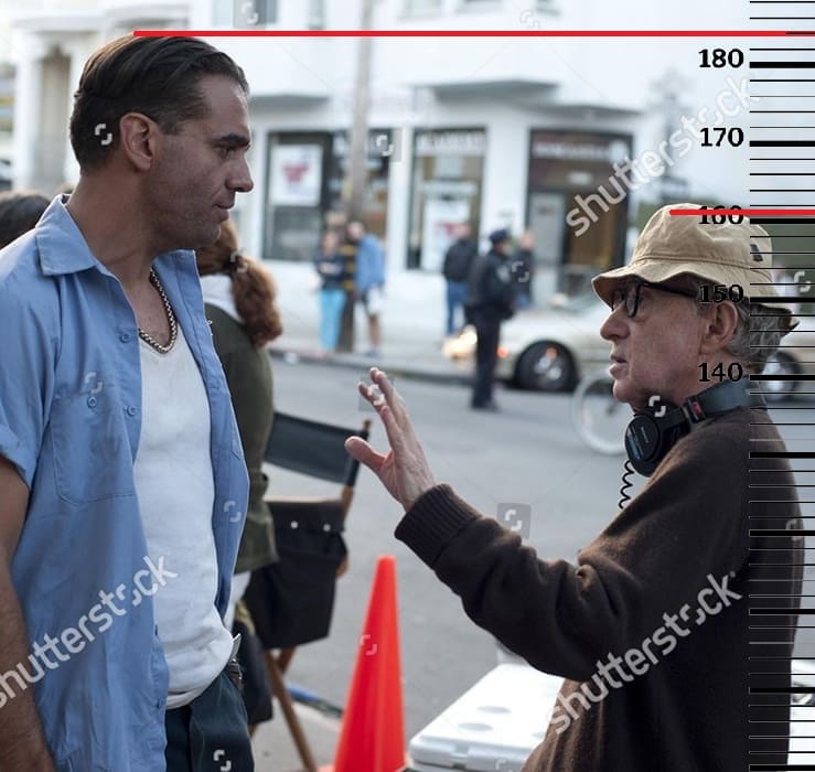 Далее сравним Бобби Каннавале с Вуди Алленом, рост которого достигает максимальной отметки 161 сантиметр. Здесь рост Бобби также держит за собой отметку 184 сантиметра.