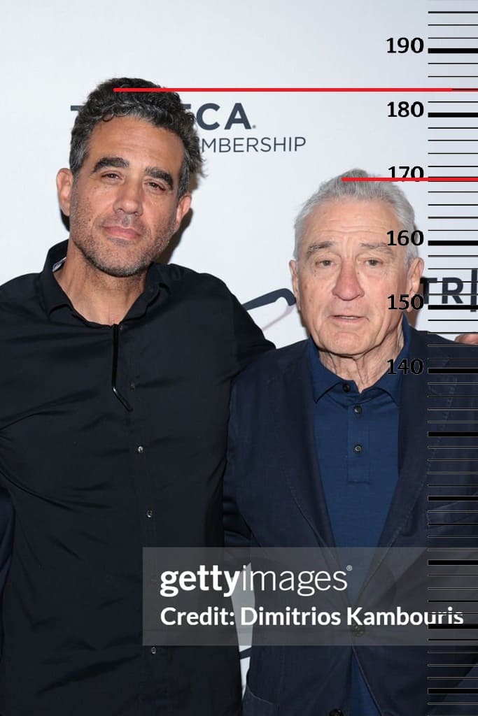 На фото Роберт Де Ниро с утренним ростом 170 сантиметров. Здесь рост Бобби Каннавале будет на той же отметке в 184 сантиметра.