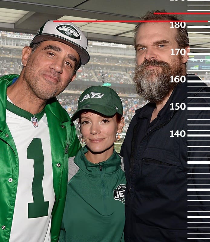 Рост Дэвида Харбора также не превышает 185 сантиметров. Здесь рост Бобби Каннавале будет 182 сантиметра, но при выпрямлении он также дойдет до 183.5-184 сантиметров.